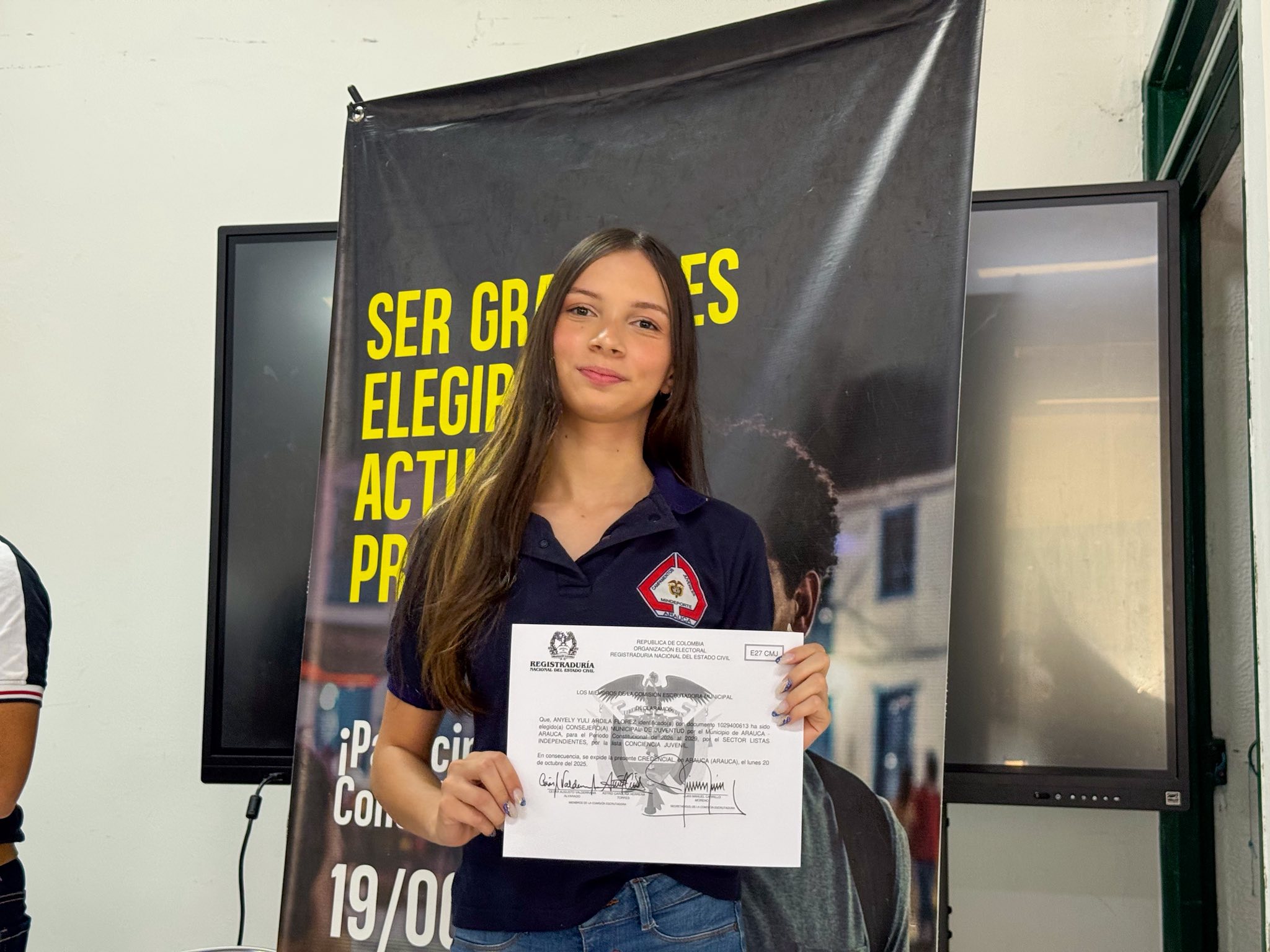 El alcalde Juan Qüenza, el Secretario de Gobierno e Inclusión Social asistieron al acto protocolario de entrega de credenciales a los 17 nuevos Consejeros Municipales de Juventud (CMJ), para ejercer el periodo constitucional 2026-2029 organizado por la Registraduría Especial de Arauca.