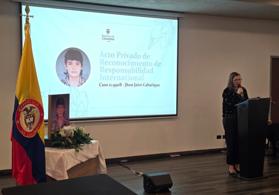 El acto se desarrolló en cumplimiento del acuerdo de solución amistosa suscrito ante la Comisión Interamericana de Derechos Humanos en 2024, en el caso 11.990B Jhon Jairo Cabarique – Colombia.