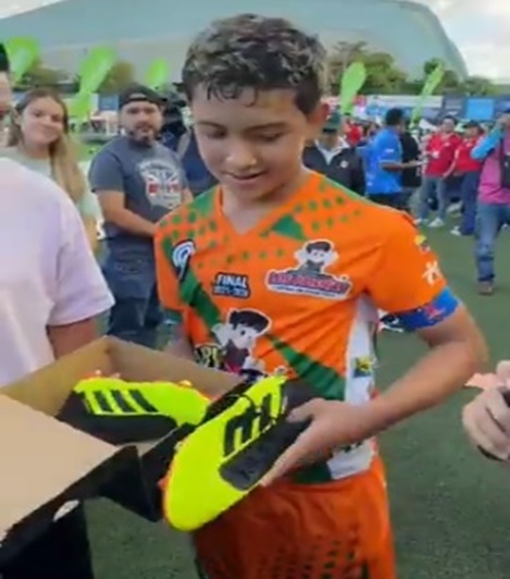 Aguirre, al hacer entrega del obsequio, destacó la importancia de formar deportistas íntegros y relató que, incluso cuando su equipo perdía al descanso, ya habían decidido que los guayos serían para él.