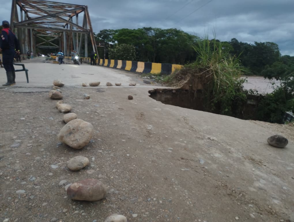 Las lluvias registradas este sábado en la zona fronteriza del Alto Apure ocasionaron un colapso parcial en el cajón puente que antecede a la estructura principal del puente sobre el río Sarare, dejando restringido el paso vehicular entre comunidades del municipio Páez, estado Apure.
