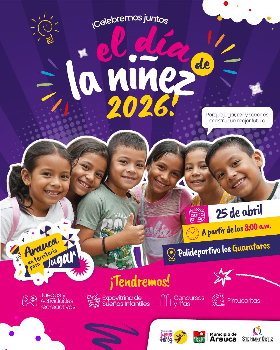 El próximo sábado 25 de abril, los niños, niñas y jóvenes de Arauca vivirán una mañana inolvidable y mágica en el marco de la gran Jornada del Día de la Niñez en el municipio capital, a partir de las 8 de la mañana en el Polideportivo los Guarataros.